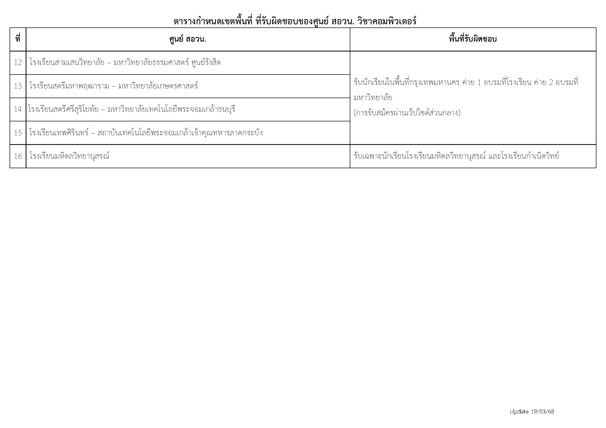 ตารางกำหนดพื้นที่รับผิดชอบ